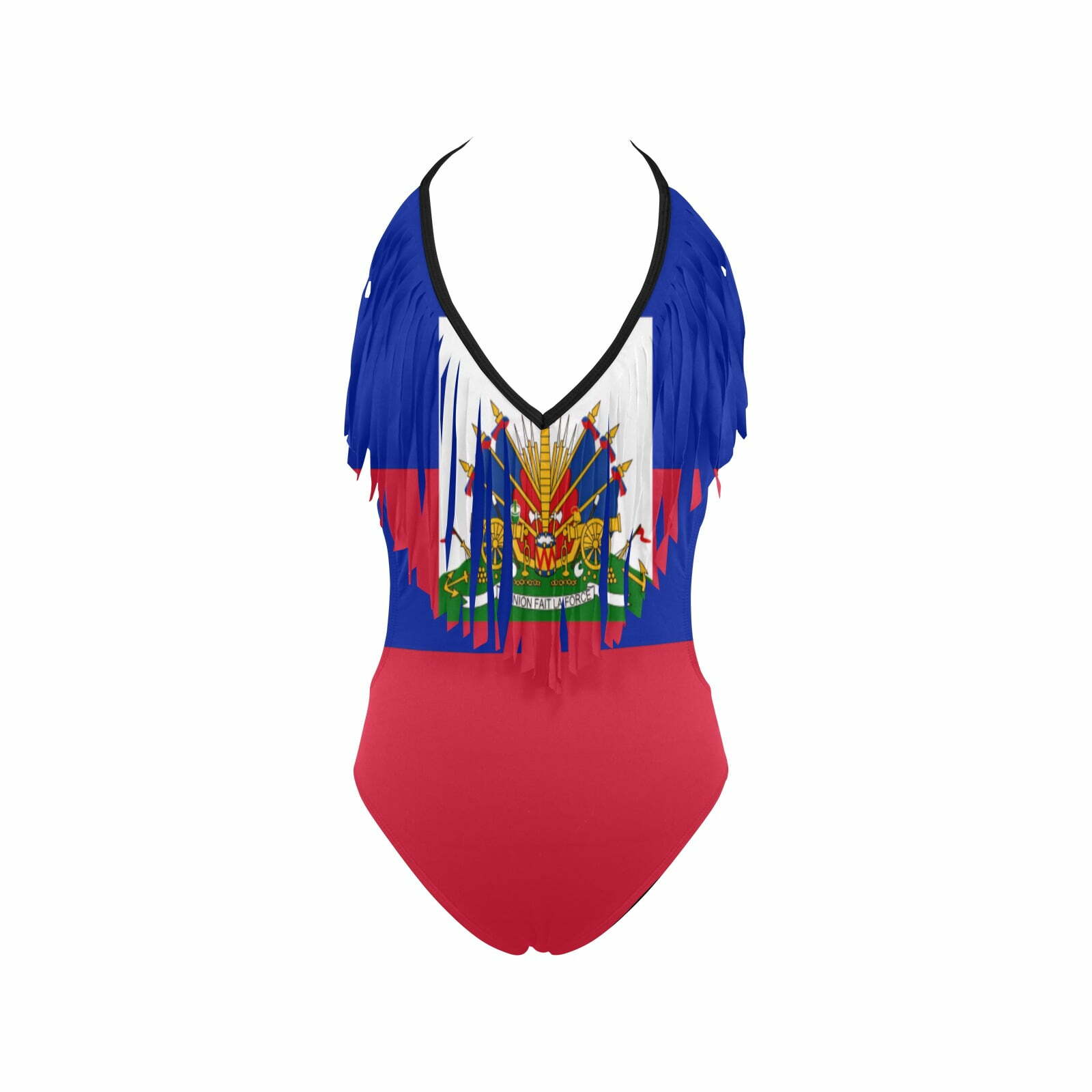 Elevate your beachside glamour with our Haitian Flag Women’s Fringe One Piece Swimsuit, a stunning masterpiece of Caribbean style and comfort. This isn’t just swimwear; it’s your ticket to Caribbean allure.